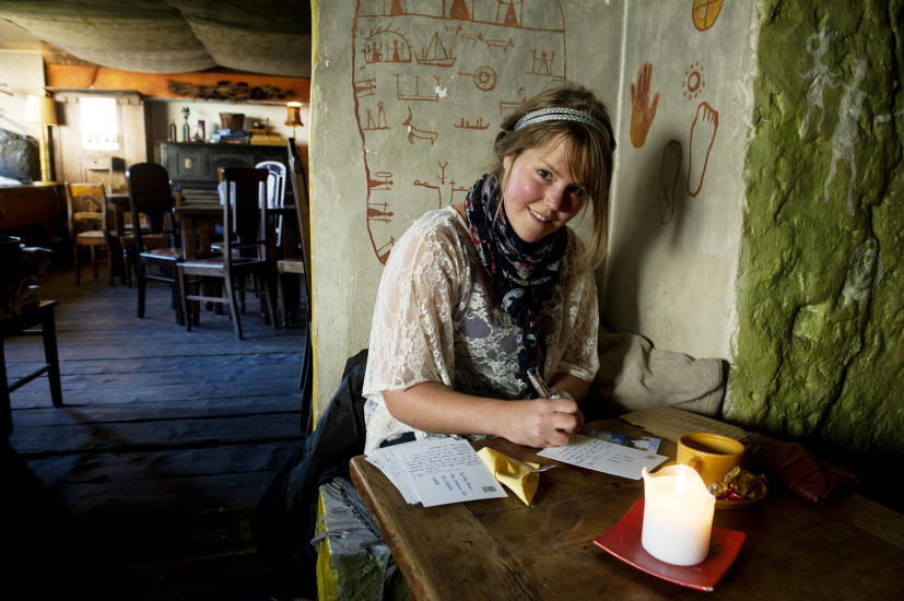 Hele 14 kort har Bergens-studenten rukket å skrive mellom tekoppene i skinnet fra stearinlys inne i kafeens mørkeste krok.