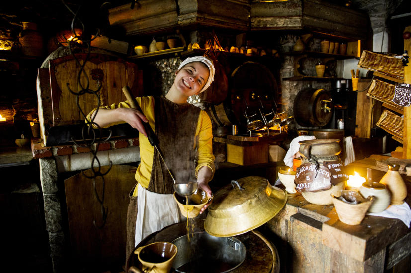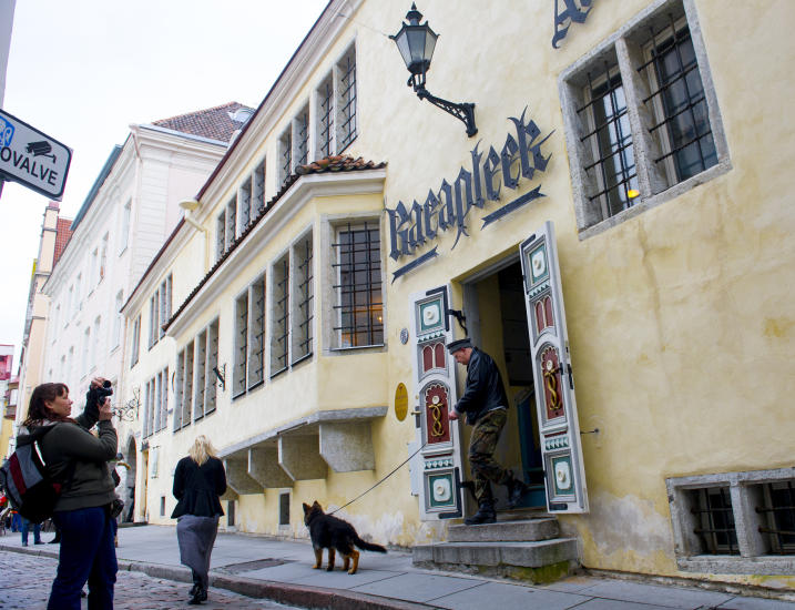 Etter endt byvandring sender hun hele turistflokken til en av Tallinns aller rimeligste steder, Draakon (den tredje Drage), i en krok inne i Rådhuset.Her serveres rykende varm elgsuppe for en euro. Fylte piroger for to euro, og de syltede agurkene i en stor tønne er gratis.