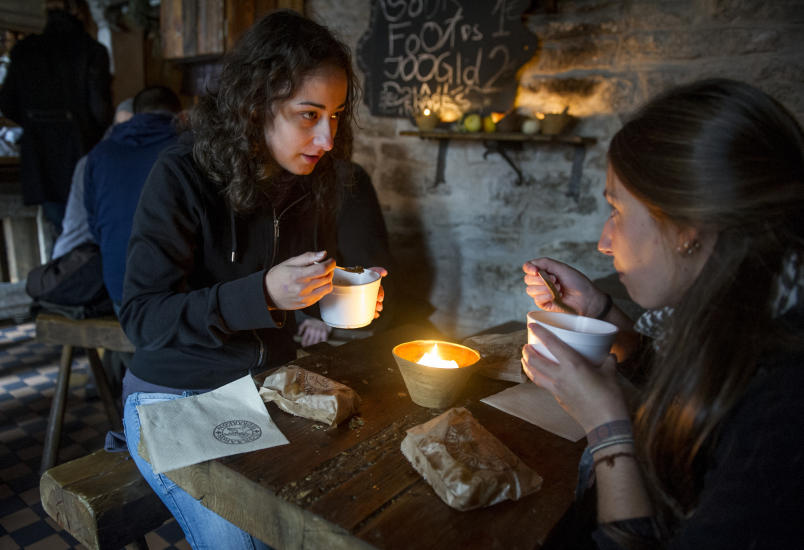 I RÅDHUSET: På Kolmas Draakon i rådhuset serveres rykende varm elgsuppe til euro. Foto: JOHN TERJE PEDERSEN