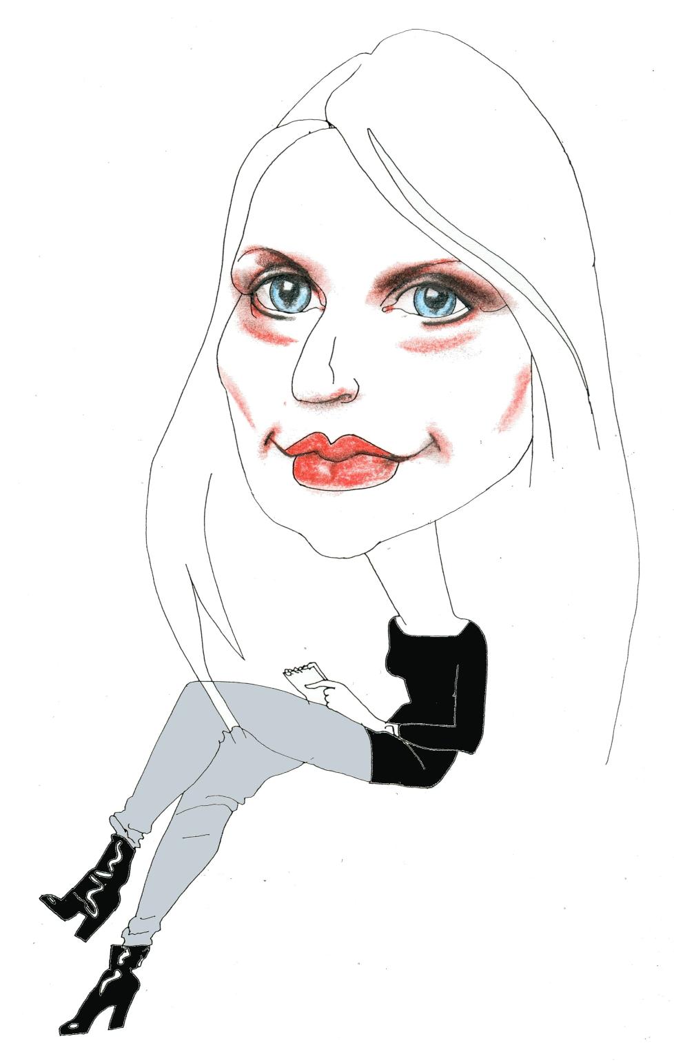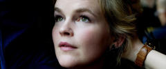 Hun ser seg rundt i ringen. Smiler.