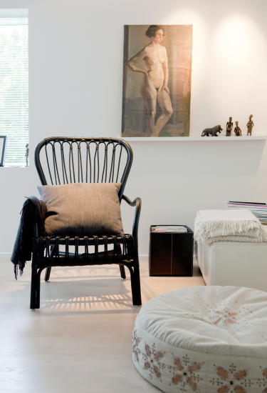 Foruten storkonsum av musikk, litteratur og kunst, bedyrer Helle at hun har et i overkant ivrig forhold til Svenskt Tenn. Rottingstolen fra Ikea er et inspirasjonskjøp i så måte.