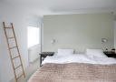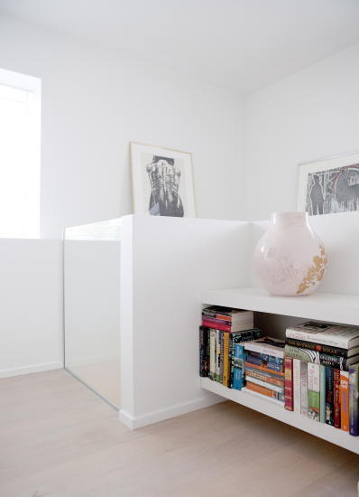 Helle mener at det er lettere å skape personlighet i et hus hvis du har et godt lerret i bunn. Som her; med hvite åpne flater og rene gulv i hvitoljet parkett og mørke fliser.