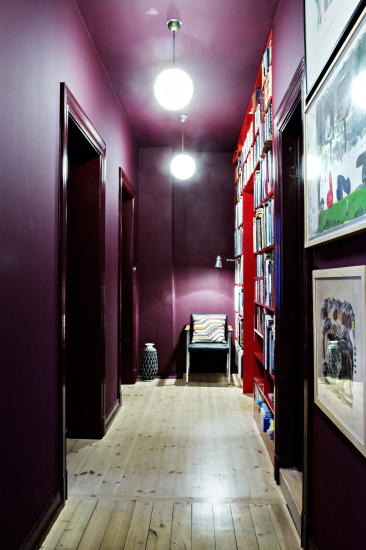 Ideen om å male rommene i ulike heldekkende farger fikk de fra arkitektnaboene Heidi og Andreas Nygaard da de ble involvert i fargeleggingen. Selv om alt av flater i et rom er rosa, eller oberginefarget som i den gjennomgående gangen, blir det likevel nøytralt og harmonisk, nettopp fordi fargen er over alt. Akkurat på samme måte som man gjør med hvitt.