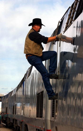 Pluss at Amtrak nå og da kjørte inn på et sidespor og stoppet, kanskje ved en nedlagt stasjon som liknet på en scene fra en av mange b-filmer, for at de av oss som er så dumme, skulle få en etterlengtet smoke-stop.