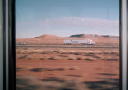 Verdens største og beste flatskjerm som viser landskapet, elvene, byene, de fraflyttede husene, fjellene, mytene, drømmene og jordene som strekker hals, mens toget suser forbi.