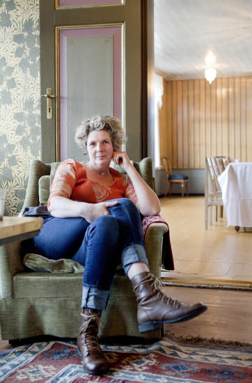 Hun driver stedet som et historisk pensjonat, samtidig som hun bor i den ene fløyen sammen med sine tre barn, to jentetvillinger på 15 og en gutt på 13.Gården har egen stall, fire mål hage og egen gårdskafé om sommeren.