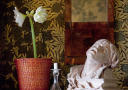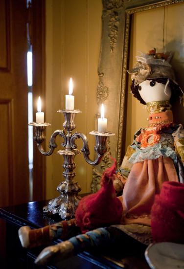 Gulv, vegger og tak er skrapt ned, restaurert og malt om med over 40 spesialfarger for å kopiere stilen i 1860-åra. Her er eplegrønne vegger og knallrøde gulv, blomstrete tapeter og gule striper.