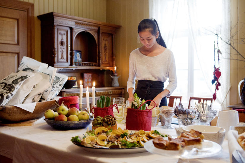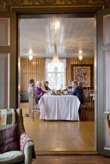 Nå i førjulstida står stuene og salene pyntet. Dampen står på kjøkkenet og gårdene sier: Velkommen inn! Kom og se! Spis! Fest! Drikk! Sov!- Her har det vært polonese, polka og fest i jula i alle tider. Gårdene brukes til det de er bygd for, sier Ingeborg.