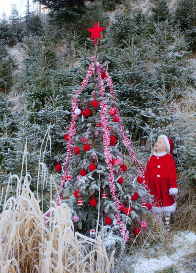 Min datter Leonora Wilhelemine og jeg dro til juletreskogen på Bontveit i Bergen for å teste ut hvordan man kan pynte juletreet på fire forskjellige måter. Vi fylte opp bilen med julepynt i alle former og varianter. Hvordan er det å pynte juletreet på sin rette plass? Det er jo i skogen treet står, og noen synes det er stas å hogge sitt eget juletre for noen hundrelapper. Juletreskoger finnes over hele Norge, og det gir deg mulighet til å finne det perfekte treet - og komme i god julestemning samtidig.