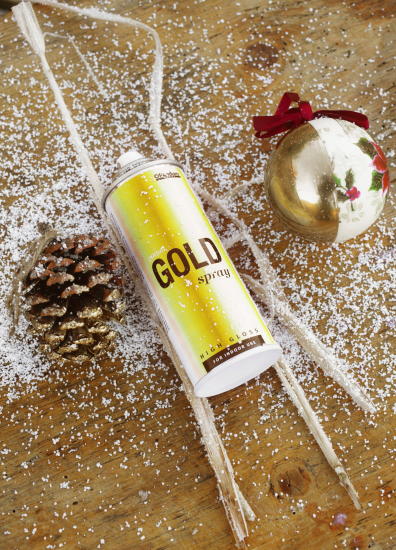 • Det meste av gammel julepynt kan spraymales med gullspray. Før sprayen er blitt helt tørr kan du drysse med glitter for å gi pynten en ekstra shimmerlook.
