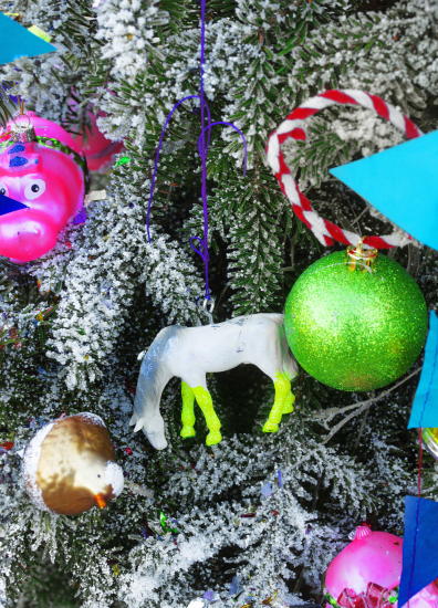 Fjær, fiskesnøre, wunderbaum og gamle lekedyr kan alle brukes, og forvandle et klassisk tre til et rocka juletre. Det er morsomt for både barn og voksne.