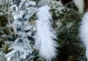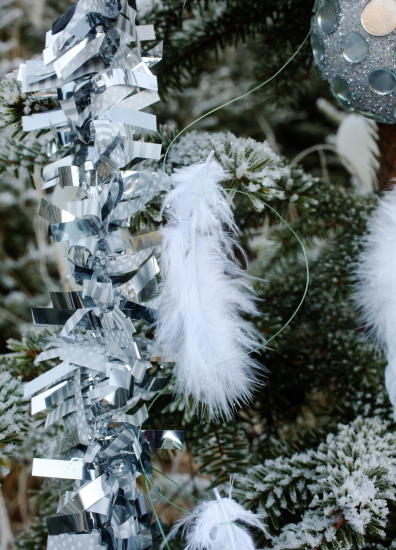 • Det er noe himmelsk med fjær, og de passer godt sammen med kuler og stjerner. Fest hvite fjær på fiskesnøre med ca 3 cm mellomrom. Heng snørene fra toppen av treet og nedover. Avslutt gjerne pyningen med å sprayet treet med dæsj glitterspray.