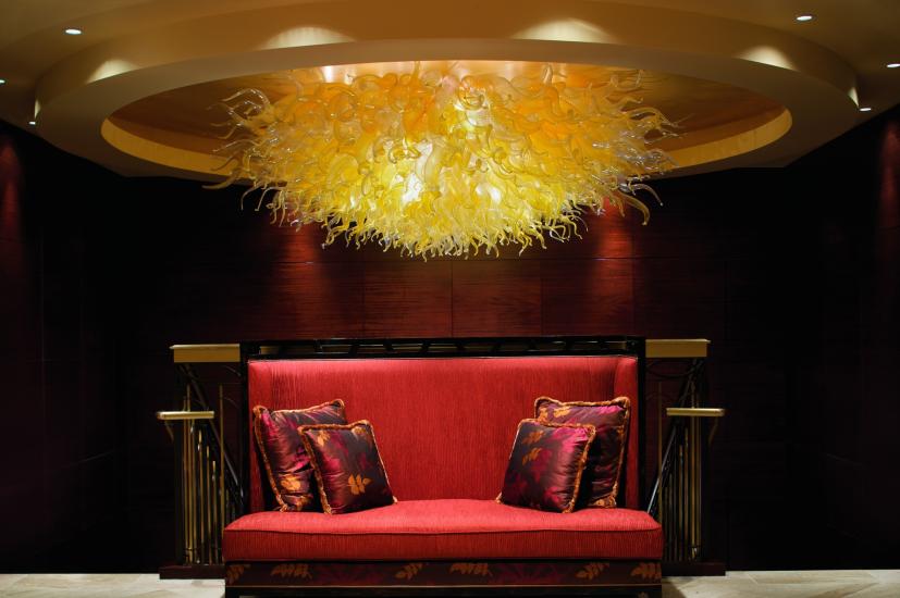 Et av verkene er ei storslått glasslampe laget av Robert Kuster.