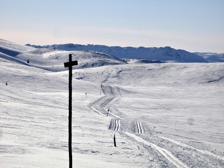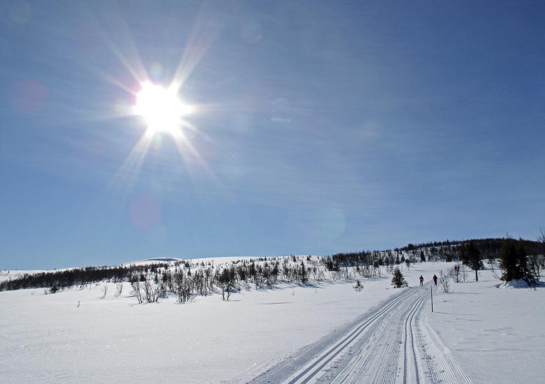 FEBRUARSOL: Kald og finkornet snø i fjellet ved Nesbyen. Foto: OLE C. H. THOMASSEN