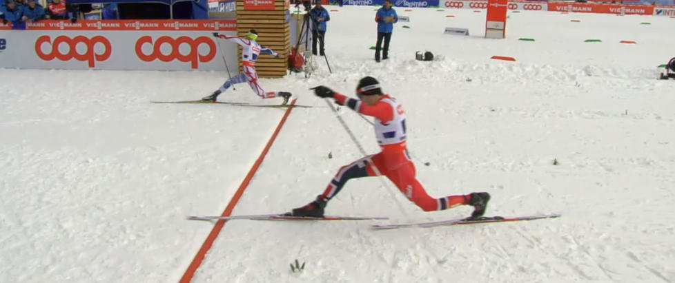 Franskmannen holdt følge helt inn på oppløpet, og noen meter før mål tok han seg forbi Magnus Moan. Dermed fikk ikke Moan den revansjen han håpet på etter torsdagens VM-renn hvor skiene sviktet.