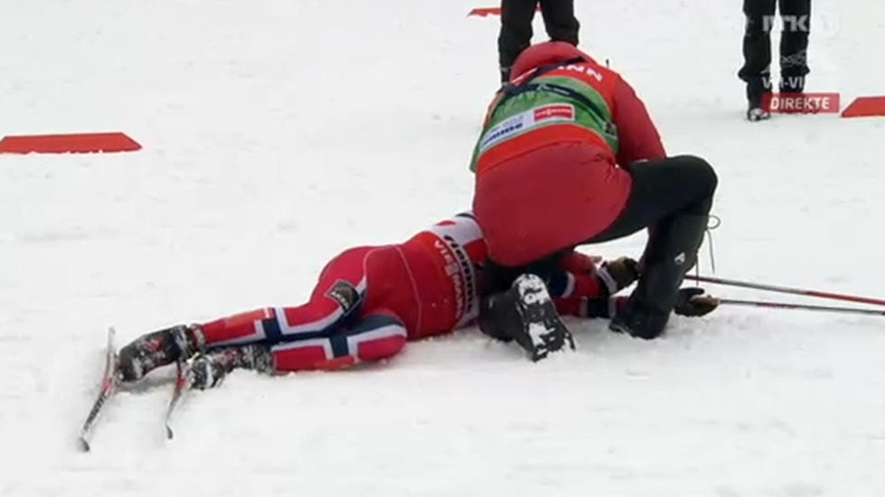 - Nå gir vi han full oppfølging, på alle mulige plan, mentalt ikke minst, sier Larsen, som var en av de som måtte hjelpe Golberg med å få av ski og staver etter siste veksling.
