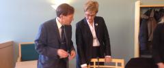 Med på turen var hennes åtte måneder gamle venn, den finske lapphunden Emil.