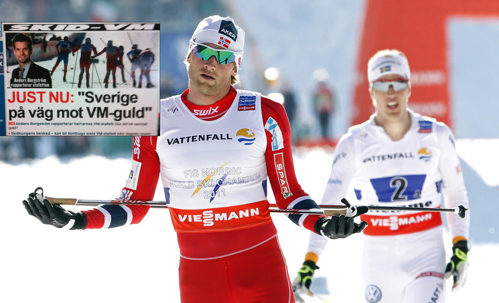 Svenske Expressen fulgte naturligvis dagens herrestafett tett på nett. Da sisteetappen nærmet seg slutten, klinket de til med tittelen «Sverige på vei mot VM-gull». De skjønte kanskje ikke det Northug skjønte selv, at dette var kattens lek med musa.
