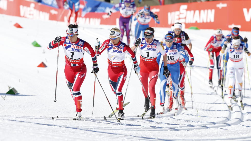 Fire norske jenter stilte til start, Johaug, Bjørgen, Kristin Størmer Steira og Heidi Weng.