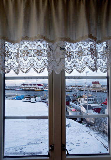Vi rusler lenger inn på halvøya. Der, med åpne glassflater vendt mot havna, ligger siste rorbunytt. Splitter nye rorbuer med panoramavinduer, badstu og moderne interiør.Beliggenheten, rødfargen og byggestilen gjør at de minner om sine eldre slektninger, men dette er rorbuer à la 2000-tallet. Hvilke turister foretrekker siste nytt, lurer vi.