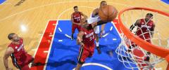 SJOKK: Her ligger Ware ute på parketten med beinet stikkende ut av leggen. Foto: AP /Michael Conroy / NTB SCANPIX