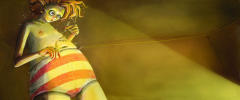 Ensomheten hennes er vist kun med et blikk på nettsiden «0 venner. 0 meldinger. 1 innlegg i forumet». Den ene er selvsagt Andrè. Han er kun vist med torsoen, et sted bare bena, et annet sted overkroppen. Selve overgrepet er tegnet i skygger: Elin som ligger på massasjebenken. Han som bøyer seg over henne. Neste tegning er helt svart. Det har en uhyggelig sterk virkning, skremmende vil jeg si. Og et tips til andre forfattere som har det med å meske seg i de sterkeste effekter.