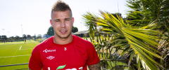 • Da ti minutter av omgangen var spilt, landet en Vaagan Moen-corner perfekt på skallen til midtstopper Frode Kippe. Kanari-kapteinen fikk til en knallhard heading, men den blei noen centimeter for høy.