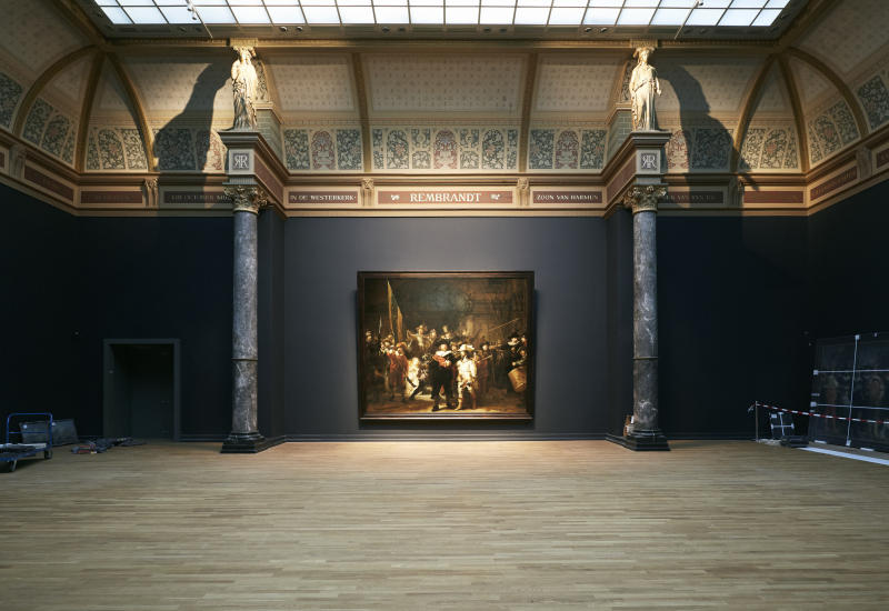 Museet sjøl bidrar med en stor veggtavle med digital nedtelling til antall timer og dager det er igjen til museets mest berømte maleri, Rembrandts «Nachtenwachten», igjen kan oppleves.