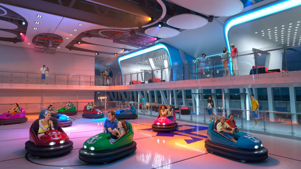 RADIOBILER: På dagtid er det ballspill, men om kvelden skal rommet gjøres om så du i stedet kan kjøre radiobiler og stå på rulleskøyter. Illustrasjon: ROYAL CARIBBEAN INTERNATIONAL / AP PHOTO / NTB SCANPIX