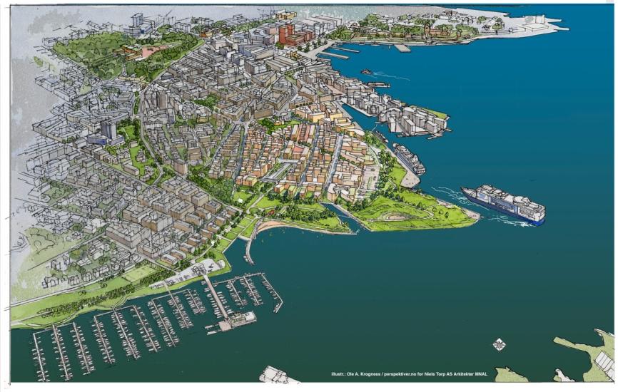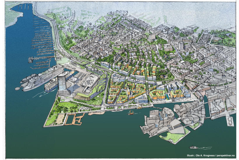 - Det jeg lurer på, er om ideen om et lokk har dukket opp under planleggingen. I og med at dette er en bydel som planlegges fra grunnen, bortsett fra at man har denne fergeterminalen liggende der.