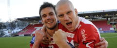 HER ENDER RAIDET: Her styrer Tarik Elyounoussi inn 2-0-målet for RBK i går. Han hadde imidlertid egentlig tenkt til å skyte med venstrebeinet. Foto: Ned Alley / NTB Scanpix
