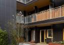 DETALRIK: Mot gårdsrommet er fasaden detaljrik og oppløst, med mykere materialer i varme farger. Foto: Ivan Brodey