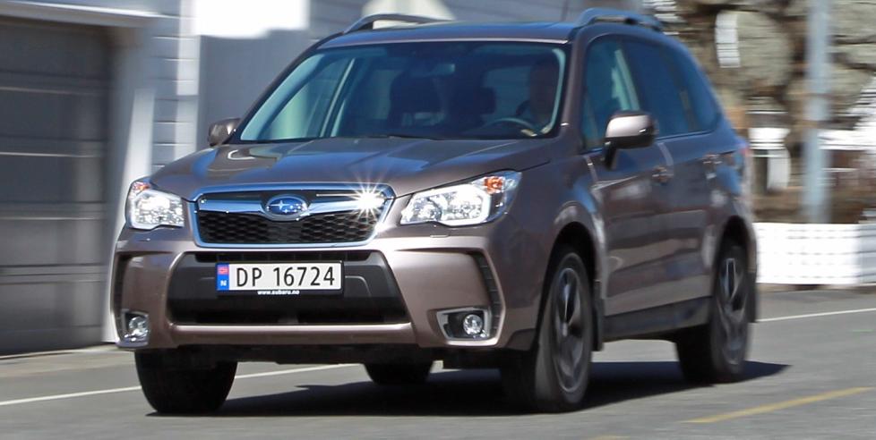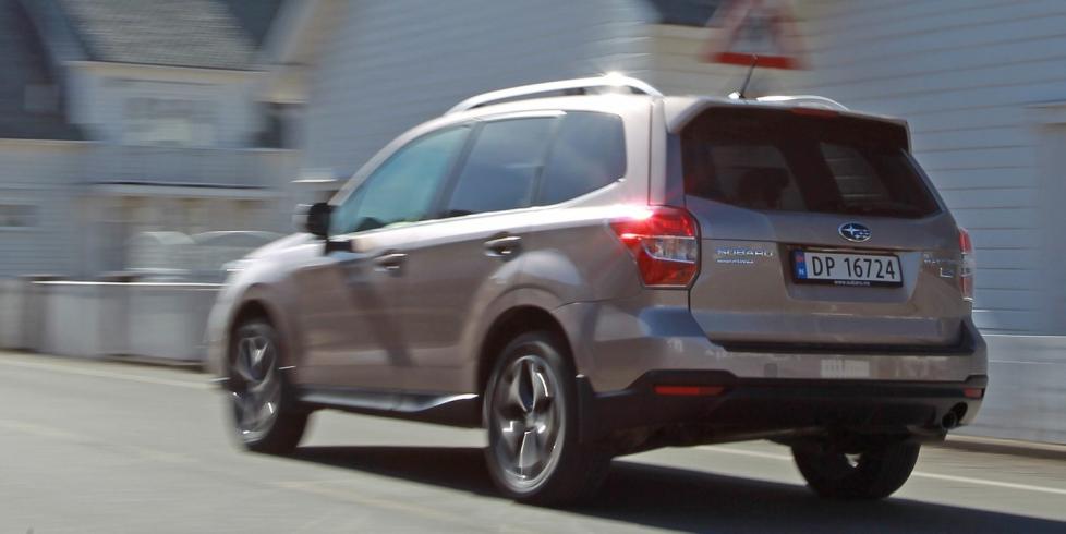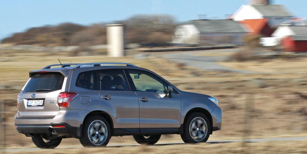 TYNGDEPUNKT: Subaru Forester ser høy og SUV-klassisk ut, men byggestrukturen og boksermotoren sørger for et relativt lavt tyngdepunkt. Det kommer kjøreegenskapene til gode. Foto: Petter Handeland