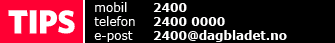 | Dagbladet.no, redaksjonen: | 24 00 00 07 |